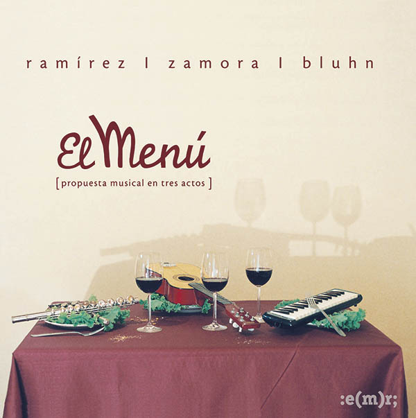 El trío integrado por Javier Ramírez (guitarra), Emiliano Zamora (flauta) y Alejandro Bluhn (piano) presenta El Menú, placa a la que definen como una “propuesta musical en tres actos”. El repertorio integra obras del trío con composiciones de Ástor Piazzolla y Gustavo Leguizamón, entre otros autores, tendiendo un puente entre formas populares de géneros diversos. El modo en que los músicos trabajan los arreglos de las canciones revela una mirada detallista y libre de prejuicios.