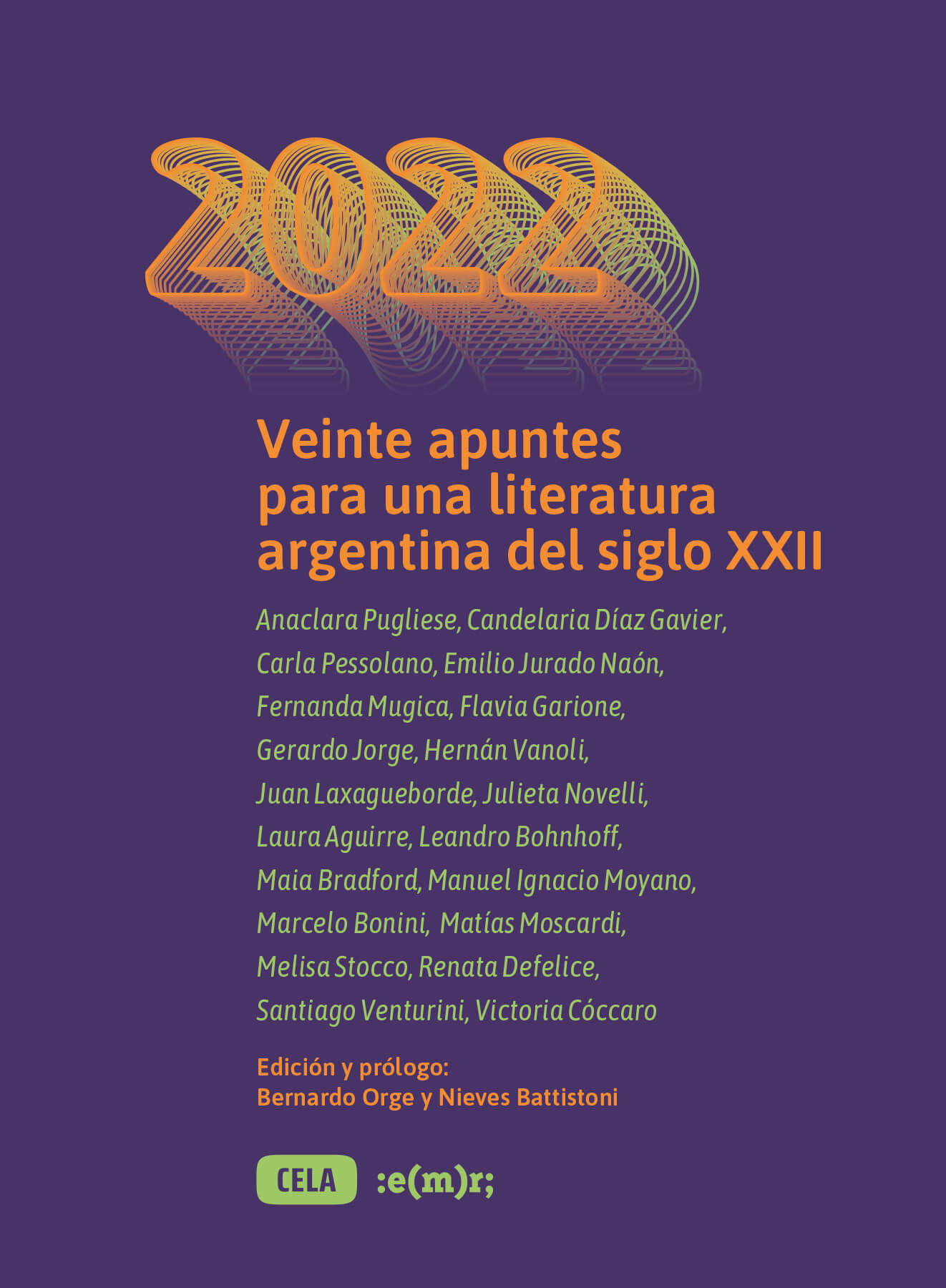 2022.Veinte apuntes para una literatura argentina del siglo XXII es una introducción a la literatura argentina actual y un acercamiento al modo en que la entienden algunos jóvenes críticos del país. Los veinte ensayos que conforman esta compilación giran en torno a obras literarias que se empezaron a difundir después de 1995, año clave, porque fue cuando comenzó a comercializarse el servicio de internet para uso doméstico en Argentina. Escritos por autores nacidos a partir de 1980, estos textos proponen un recorrido panorámico y deliberadamente inespecífico por algunos de los fenómenos más significativos de la literatura argentina de las últimas dos décadas y media, y brindan algunas claves sobre un escenario en el que aún de manera incierta parece gestarse algo nuevo. Coeditado por el Centro de Estudios de Literatura Argentina y la Editorial Municipal de Rosario, 2022. Veinte apuntes para una literatura argentina del siglo XXII es un libro virtual de descarga gratuita que viene a completar la serie iniciada por 2020. Veinte episodios de la historia de la literatura argentina del siglo XX y continuada por 2021. Veinte ensayos sobre literatura y vida en el siglo XXI.