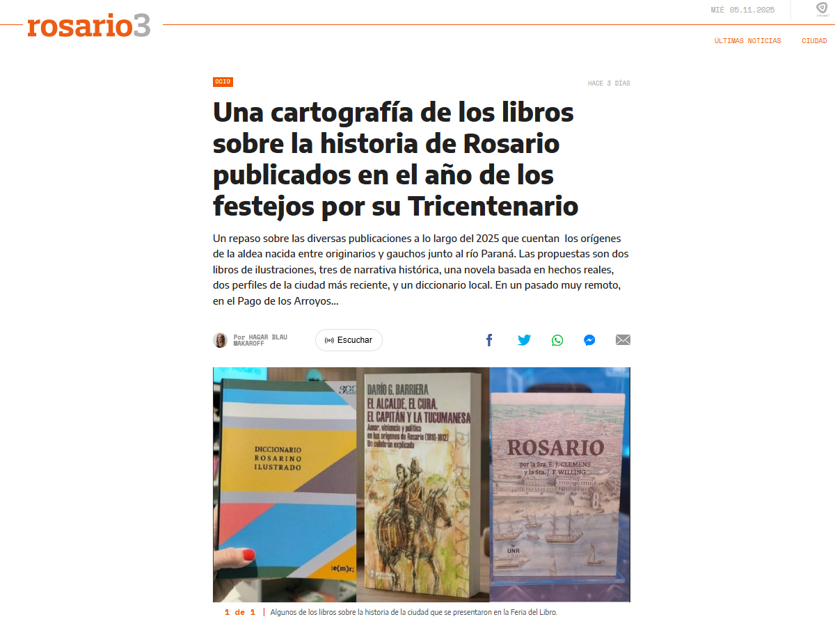 Culminada una nueva edición de la Feria Internacional del Libro de la ciudad, allí se abordaron en paneles y presentaciones de libros, las distintas perspectivas de aquel pasado rosarino tan lleno de aristas como de protagonistas, desde Fausto Hernández y Pedro Tuella, Manuel Belgrano, el alcalde Don Isidro Noguera, y el cura Julián Navarro, Pedro de Godoy y los calchaquíes. Para no perder de vista, cabe repasar el amplio espectro de las publicaciones enmarcadas en el Tricentenario que se publicaron este año, y que en su mayoría, fueron presentadas durante la Feria.